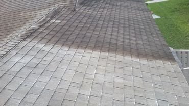 Our approach to cleaning roofs is comparable to how we clean houses. We employ a safe and gentle cleaning solution at low pressure to effectively eliminate black streaks, algae, moss, and lichen from your roof.